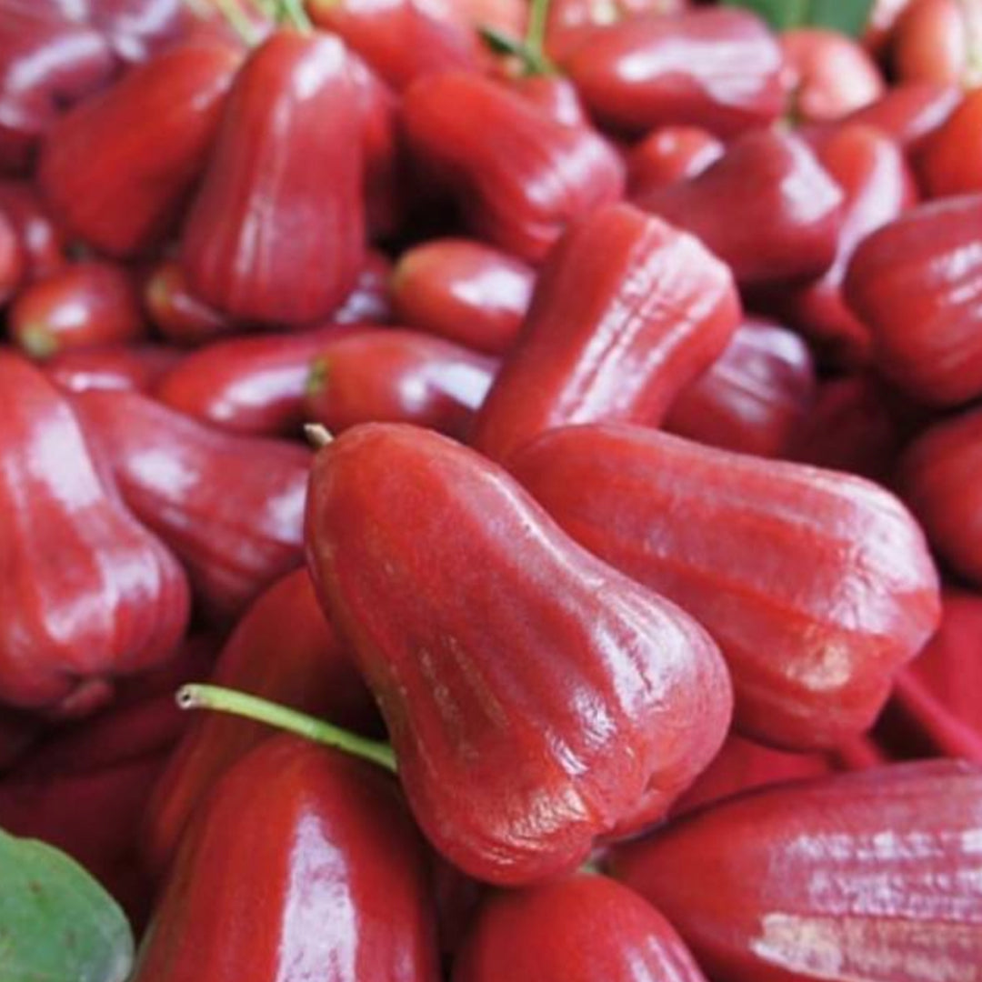 Similar to its name, this red fruit has a bell shape and is commonly consumed raw. Its flesh is watery, spongy-crisp, faintly scented, and thirst-quenchingly delicious. Ripe water apples have a wide range of culinary applications since they add a great flavour to salads, drinks, smoothies, ice creams, and jams.