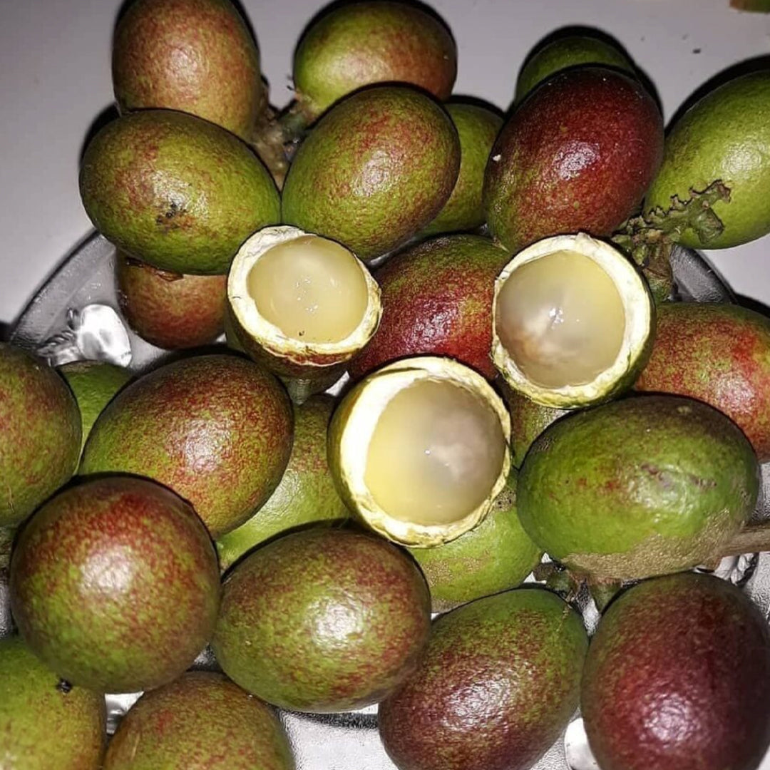 The fruit is edible, resembles litchi, and is a well-liked fruit. Fruit pulp is translucent, delicate, and squishy. It has a flavour all its own, resembling a blend of lichee or longan with a dash of durian. When the fruit is fully mature, the skin turns black.