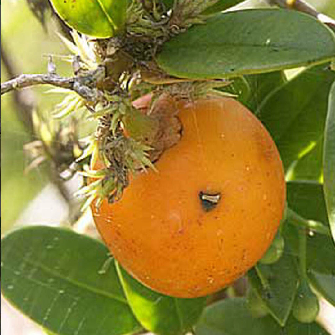 Garcinia Aristata, the Cuban Mangosteen, is a short tree related to the mangosteen that produces tiny orange-yellow fruits with delicate content. It is one of a few number of Garcinias that thrive on the sandy soil with a high pH at our property in southwest Florida. Its incredibly attractive leaf, which has a stiff, painful-to-touch needle-like point, is its distinctive identifying feature. The fruit flavour can be compared to a combination of Garcinia intermedia and Garcinia livingstonei because it is sweet with little acidity. The flavour profile is dominated by subdued citrus notes.