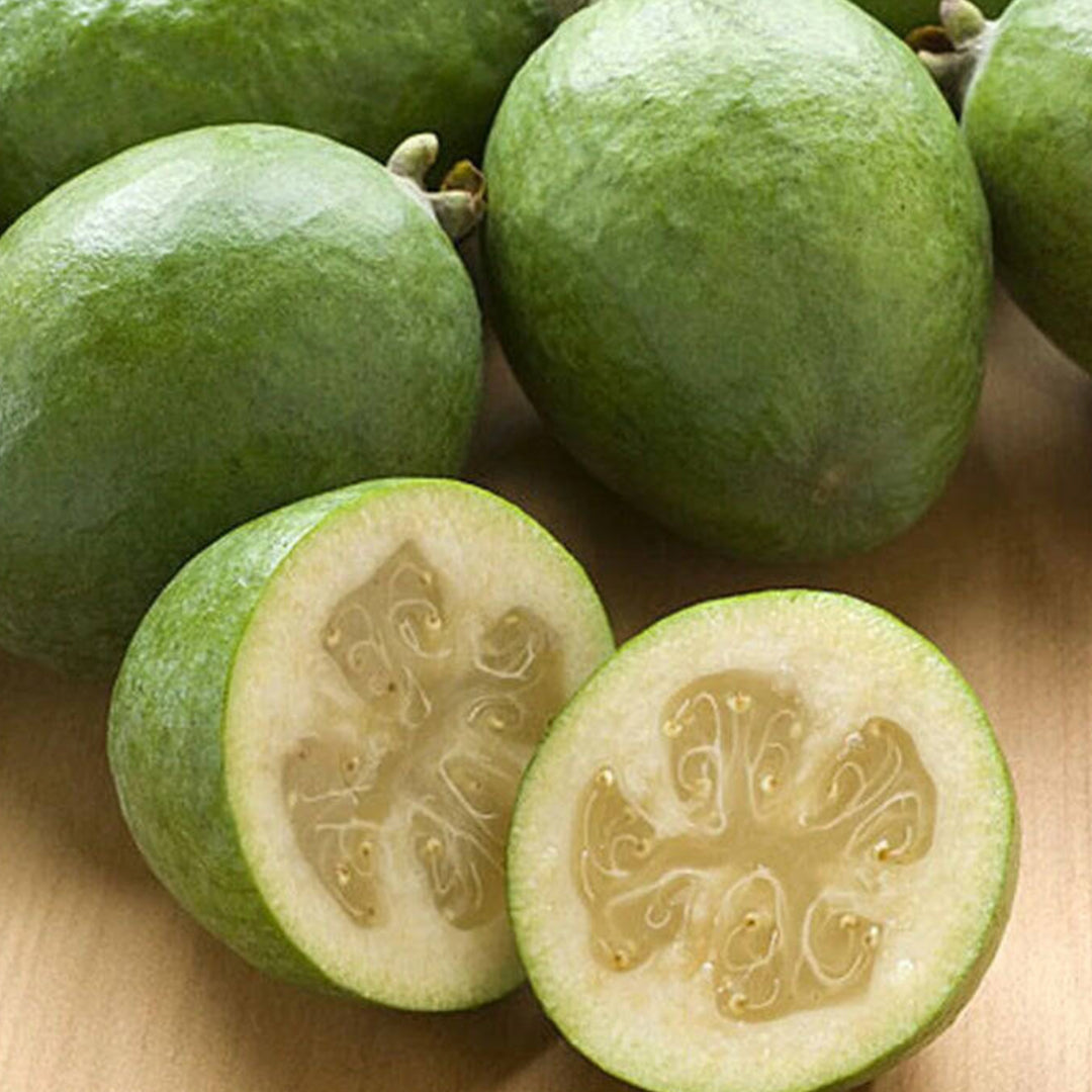 An example of an evergreen, flowering plant is the feijoa, which belongs to the Myrtaceae family. Southerly Brazil, eastern Paraguay, Uruguay, northern Argentina, and Colombia all have highlands where it is native. It is commonly grown for both its fruit and as a decorative tree. It will grow to a height of 10 to 15 feet. The trees are both attractive and abundant, producing sweet, aromatic, delectable fruit that resembles guavas in both appearance and flavour. Raw pineapple guava is delicious. The creamy white inside is surrounded by a transparent pulp. Feijoa will tolerate some shade, but prefers full sun. Fruits must be produced under conditions of consistent soil moisture. To supply nutrients and shield the shallow roots, deeply and frequently water the area. Mulch is also recommended. Although it will withstand a variety of less-than-ideal soils, from sand to heavy clay, it also prefers wet, well-drained soil. It produces the most blooms and fruits in full sun, but it will still thrive in some shade.