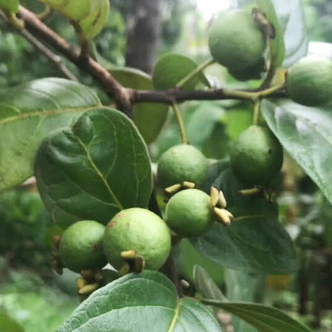 A tiny tree in the myrtle family, the grape guava (Psidium guajava) is native to Mexico, Central America, the Caribbean, and northern South America. The fruit has a combined flavour that is juicy, sweet, and sour. comes in groups. When fully ripe, the fruits’ green tint changes to yellow. Fresh guavas are frequently consumed raw and can be cut and served with sugar and cream as a dessert. They are high in vitamins A, B, and C.