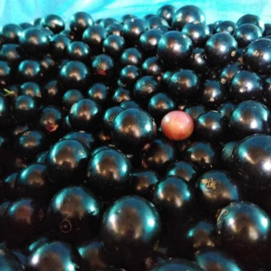 The dark purple, globose, mature fruits have one to four small seeds. The pulp may have a pinkish tinge and taste much like maraschino cherries with undertones of Sabara Jaboticaba. It is thought that Sabara Jaboticaba grows more slowly than Campo de Ramon.