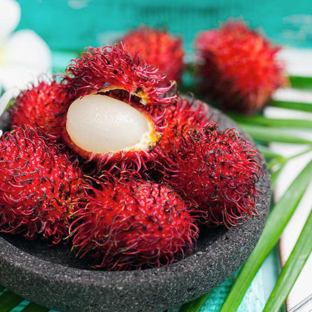 The N18 Rambutan is a Malaysian native. Kerala has seen strong growth and consistently excellent yields, making it the perfect place for commercial cultivation. The fleshy part surrounding the seed is translucent in colour, and the fruits are enormous in size and ovate in shape. The outer skin and hairs are red in colour. Taste is sweet with a touch of tanginess.