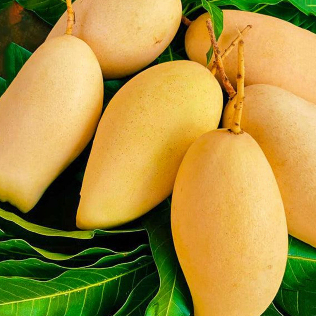 The mango cultivar known as “Nam Dok Mai” originates in Thailand. The name “Nam Dok Mia” means “Sweet Juice of a Flower” in English. Because of this, some locals claim that the scent of this mango type is similar to daffodils. It is a medium-sized tree that might grow to be over six metres tall. The fruit quality is superb, with a rich, sweet flavour and pale green or yellow, fiberless flesh. Commercial Nam Doc Mai cultivation is practised in Colombia and Australia.