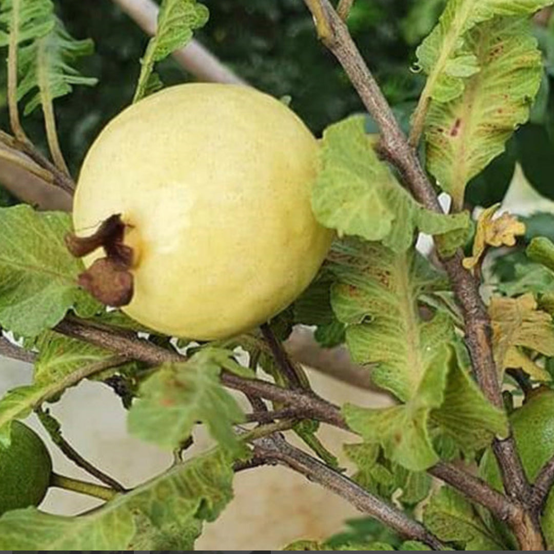 A variety of guava plant known as “spring guava” has curly, spring-like leaves. The fruit is white, medium in size, and has a pleasant sweetness to it. The spring-like leaves add to its decorative value.