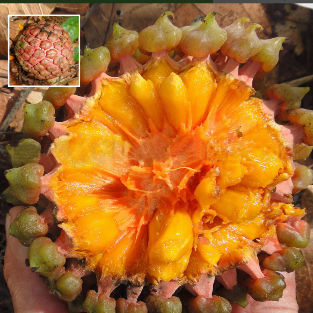 The extremely rare Yara Yara tree, also known as Duguetia Lepidota, grows in lowland rainforests in Venezuela, Colombia, Suriname, and neighbouring Brazil. This relative of the cherimoya produces an absolutely stunning fruit that is not only edible but also unquestionably the best-tasting Duguetia on the market. The fruits have a globular shape and are roughly the size of an apple. They have a highly pigmented skin that is covered in numerous projecting scales that are a dark red colour. The brilliantly yellow to crimson, delicious flesh has been compared to apricots with hints of jackfruit. Although Duguetia Lepidota has not yet been domesticated, it will become a fascinating fruit tree for tropical areas.